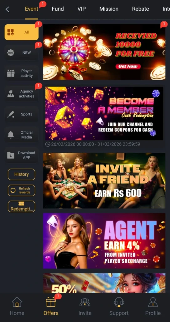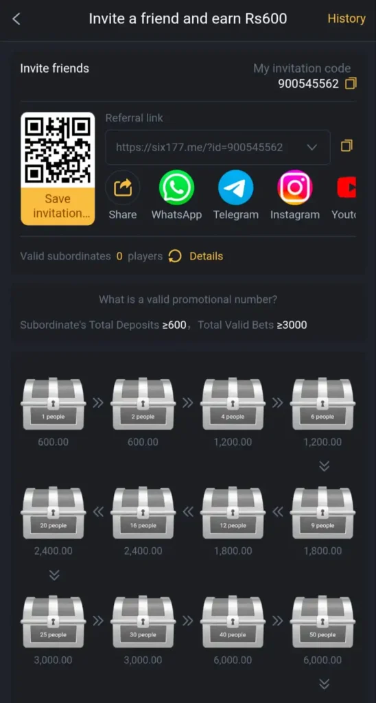 - Referral Cashback: Earn 600 PKR when your invited friend registers and makes a deposit.